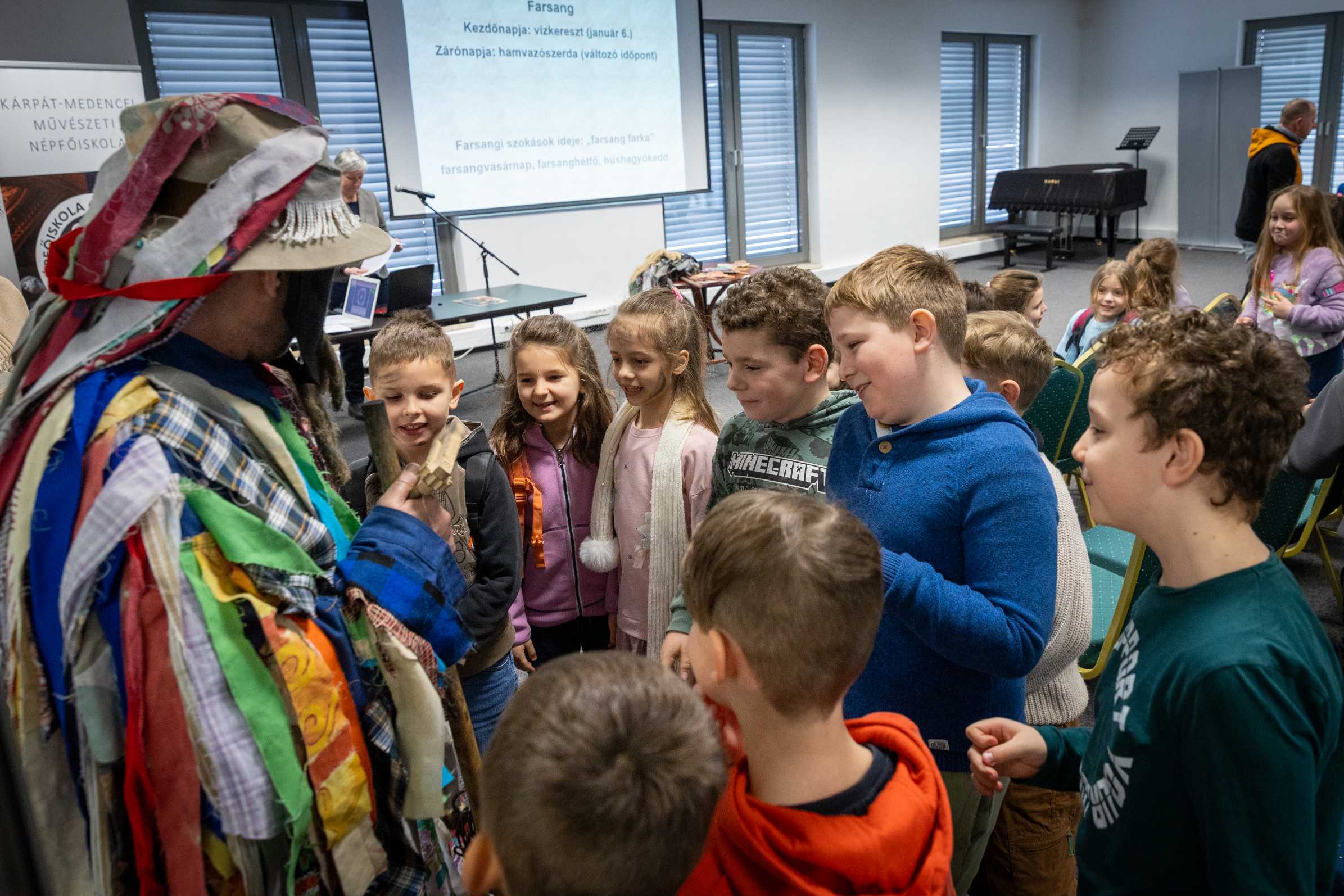 Mese, kisfilm, fotókiállítás és játékos feladatok segítették őket abban, hogy átéljék, miként él tovább ez a különleges néphagyomány Mohán, hogyan kapcsolódik húshagyó keddhez, és mit is ünneplünk a farsangi időszakban. A nap zárásaként Gryllus Vilmos „Maszkabál” koncertje teremtett igazi farsangi hangulatot.