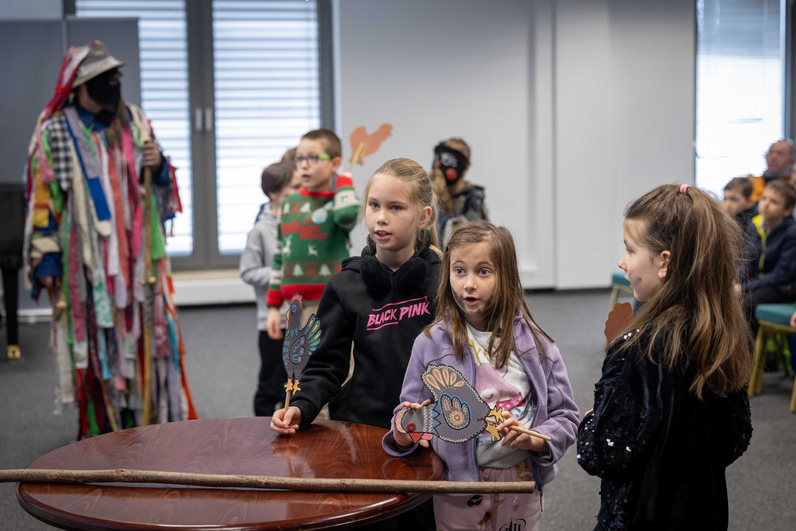 A gyerekek interaktív foglalkozásokon hallhattak a farsangi népszokásokról, jelmezt ölthettek, „tikverőzhettek”, sőt a hagyományos kormozást is kipróbálhatták.