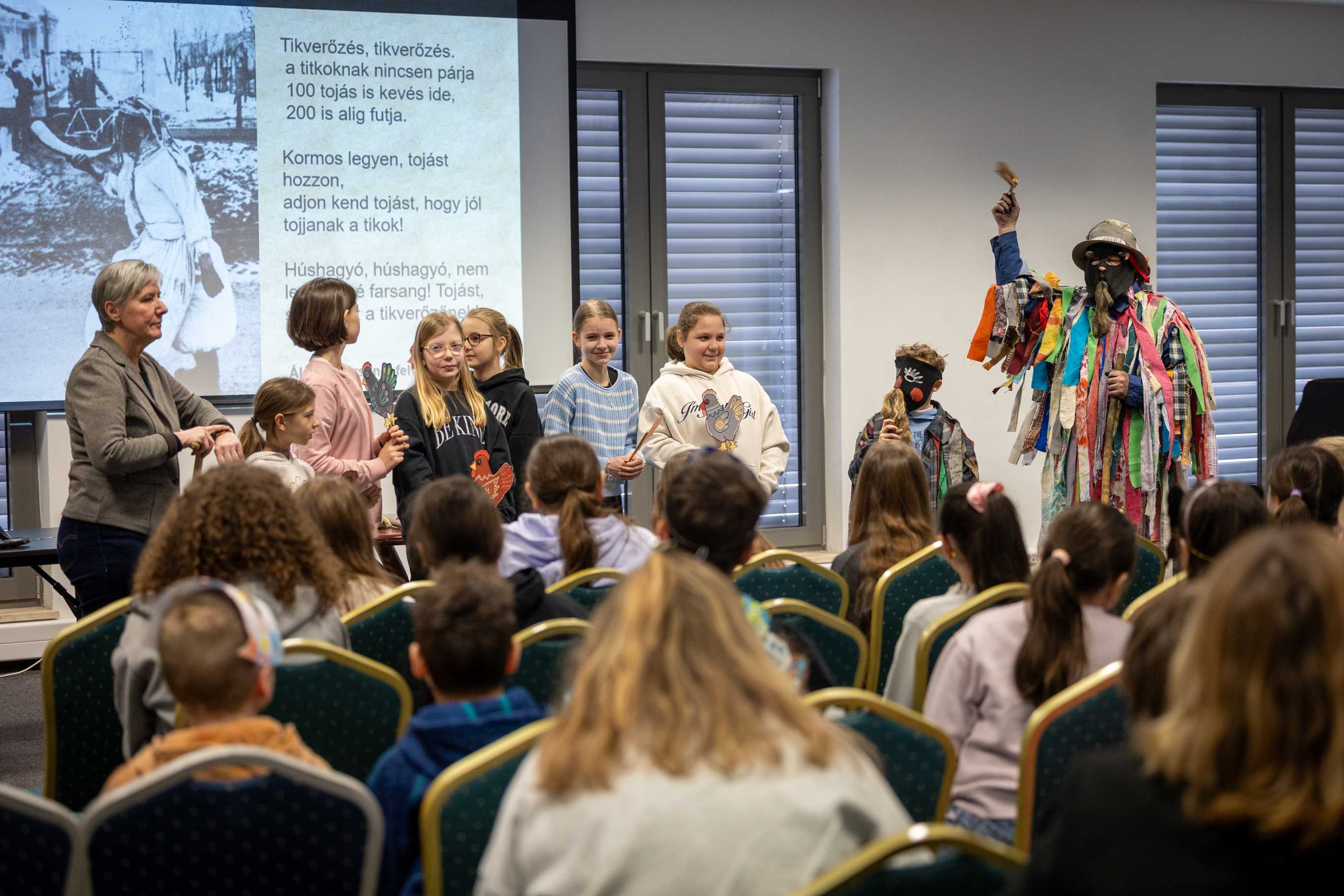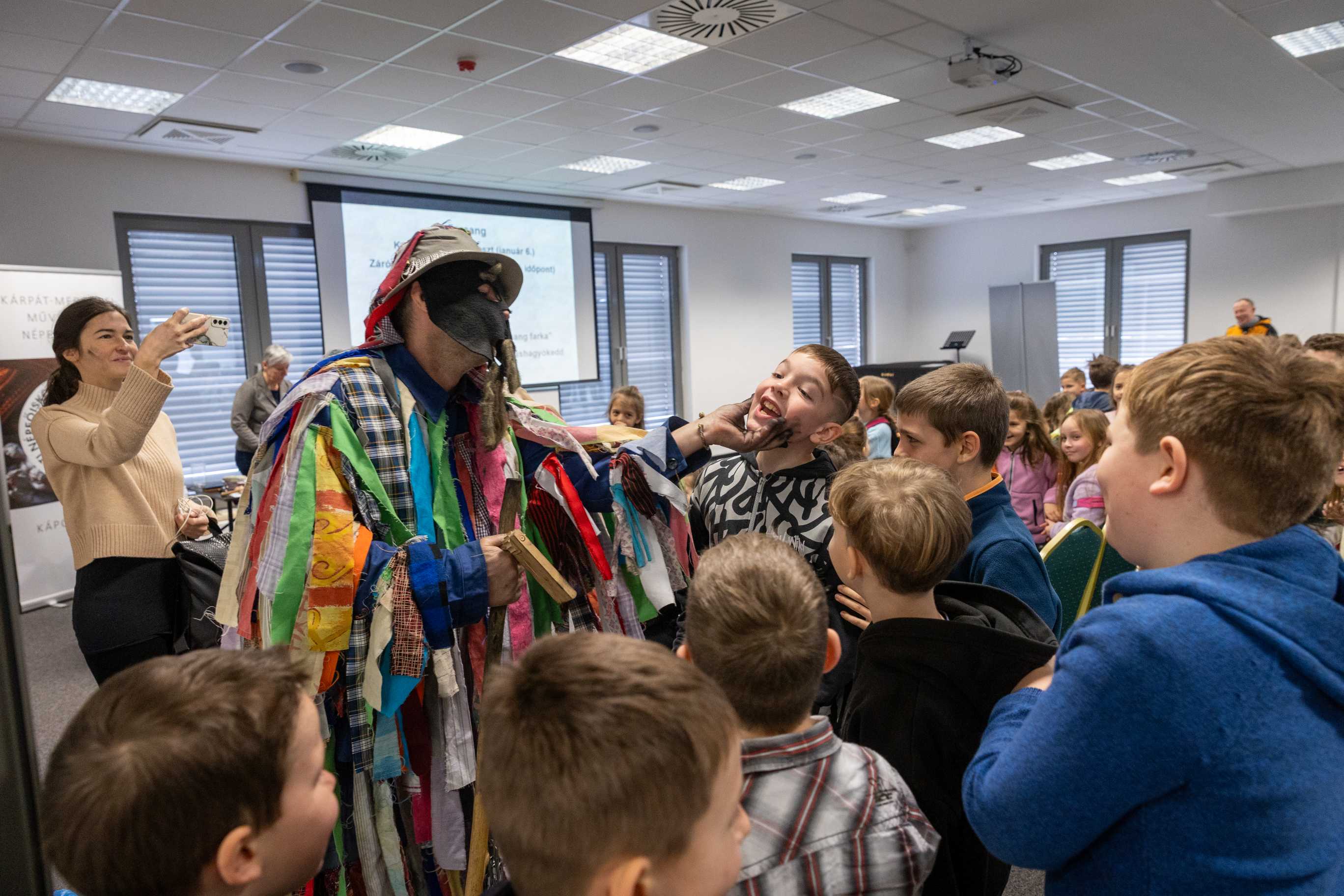 A gyerekek interaktív foglalkozásokon hallhattak a farsangi népszokásokról, jelmezt ölthettek, „tikverőzhettek”, sőt a hagyományos kormozást is kipróbálhatták.