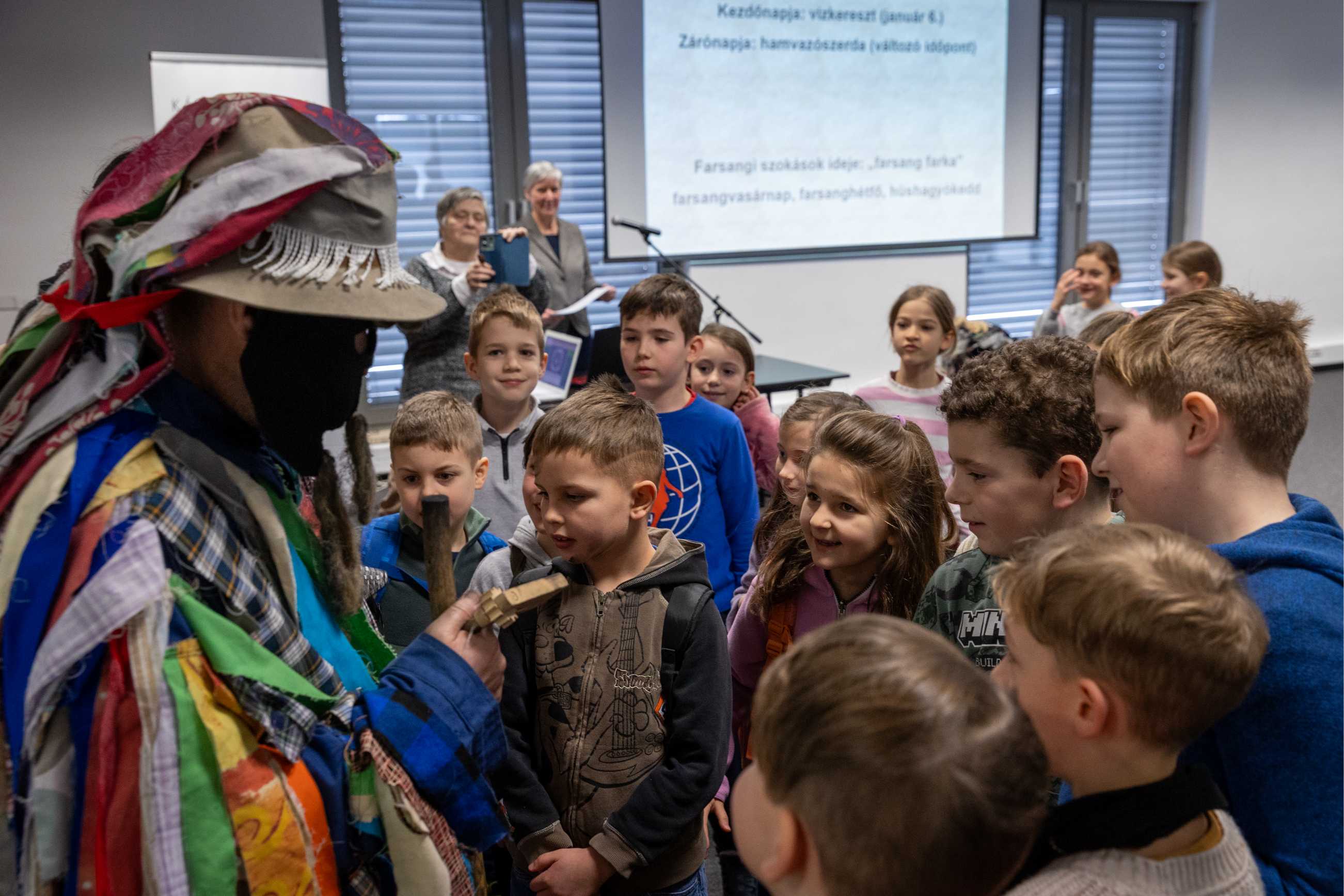 Mese, kisfilm, fotókiállítás és játékos feladatok segítették őket abban, hogy átéljék, miként él tovább ez a különleges néphagyomány Mohán, hogyan kapcsolódik húshagyó keddhez, és mit is ünneplünk a farsangi időszakban. A nap zárásaként Gryllus Vilmos „Maszkabál” koncertje teremtett igazi farsangi hangulatot.